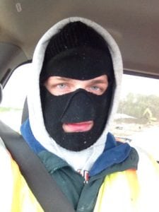 Hello Tumblr. I’m back in the states and somewhat busy. I worked 60 hours in 6 days last week, so simple math will tell you that 60/6 = a lot of work every fricken day. Not that I’m complaining. After all, I’ve worked harder in the past, and it’s good that I’m earning back some of the money I’ve so gratefully pumped into the Argentine economy. The only thing I will complain about is the weather. It’s nicer today, but that picture, taken last Monday, is me in a ski mask and 5 layers of clothing because it snowed on my first day back at work. The snow didn’t stick around, but when it does I’ll be less-employed and have to find another job somewhere else before school starts again in January.