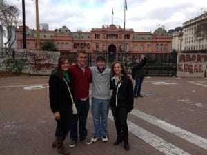 Here’s the only group photo I have so far. This isn’t everyone, but from left to right goes Morgan, me, JJ, and Amy. Props to Jill for the picture-taking skills. And for those of you wondering, that is the Casa Rosada (Pink House). No big deal, but it’s basically the White House… but pink. Yeah la presidente lives there. And the protesty-looking stuff is part of a weekly demonstration by the parents of los desaparecidos, who have met there every Thursday for the past three decades to commemorate those who disappeared by the hands of the dictatorship. Basically, you (yes, that means you) need to get on Netflix and watch La historia oficial.