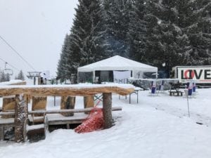 After the shuttle to the bottom of the slopes, starting was as easy as buying a day pass and hopping on the lift. There was a man there sweeping the fresh snow off the seats for the occasional user, but I had the feeling that there would be absolutely no one if it weren’t for the weather – when I’ve snowboarded in the US, usually there’s a safety dude whose whole job is to make sure people don’t biff it on the lift. I didn’t sign any waiver, and even though the slopes were clearly marked, they weren’t as foreboding if you were to decide to go off-course.