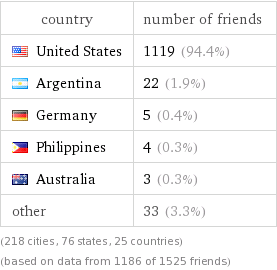 Friend distribution (2nd place Argentina):
