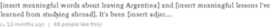 Running the report after almost a full year away from the country, there is still plenty of influence that shows up in almost all sections of the report. My most commonly said words include “Argentina”, “travel”, and “abroad”: