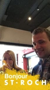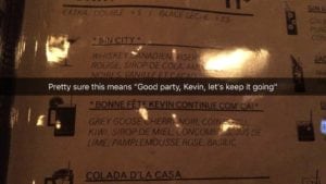 We found the right bar later just a block away. I ordered a drink called “Bonne Fête Kevin Continue Com’ Ça!” which translates to “Good Party Kevin Let’s Keep It Going” and was pretty good. It tasted like an alcoholic health drink which maybe I should starting getting into instead of beer and rum and Coke (pop has so many calories in it). The bartender explained the origin of the “Bonne Fête Kevin” which was a “viral” video where, for all I can tell, is a bunch of people repeating the phrase, “Bonne Fête Kevin Continue Com’ Ça”. Beverly nor I really understood the appeal of the video but it totally reminds me of “Damn Daniel, back at it again with the white Vans”. People are easily entertained everywhere.