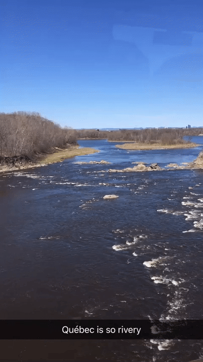 This train ride is great. Getting on was a breeze and I have plenty of space to myself (I don’t think a ton of people go from Québec to Montréal on a Wednesday). It only takes 3 hours to get from Québec to Montréal by train since the cities are so close. The train resembles the one I took between Omaha and Denver. It doesn’t look or feel particularly sleek like the ones in Europe, so it must be a North American thing. The countryside resembles Nebraska and Colorado with way more of the good parts. There’s plenty of farmland, but more hills and rivers. I swear we cross a river every 10 minutes and they all look amazing.